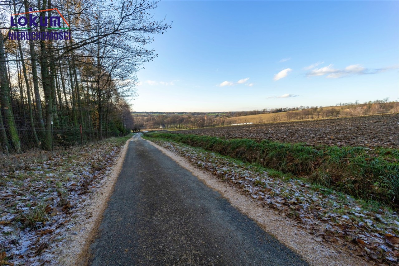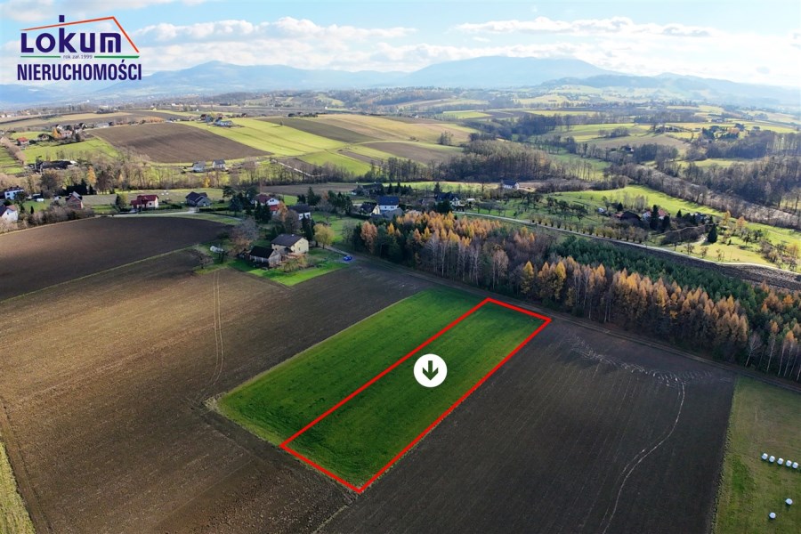 Z terenu działki rozpościera się szeroki widok na dolinę i okoliczne wzgórza – widać rozrzucone zabudowania, łąki i zadrzewienia. Miejsce jest ciche, sprzyja wypoczynkowi i kontaktowi z naturą.