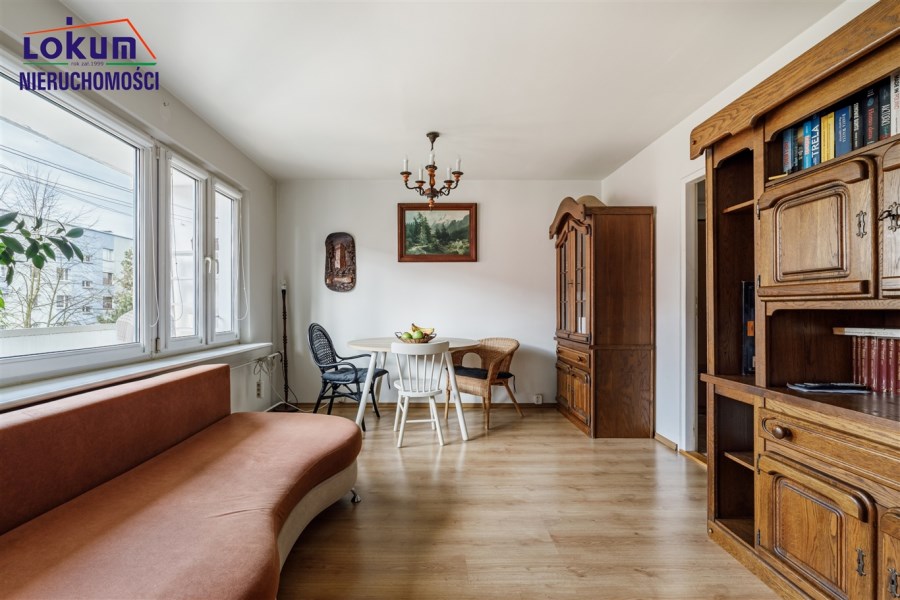 Wnętrza są zadbane i czyste. Podłogi w pokojach wykończone panelami, w kuchni, przedpokoju przy wejściu oraz w łazience i WC – płytki. Łazienka i toaleta w starszej glazurze, w dobrym stanie technicznym – mieszkanie nadaje się do zamieszkania „od razu”, a ewentualne odświeżenie / modernizację można przeprowadzać etapami, według własnego pomysłu.