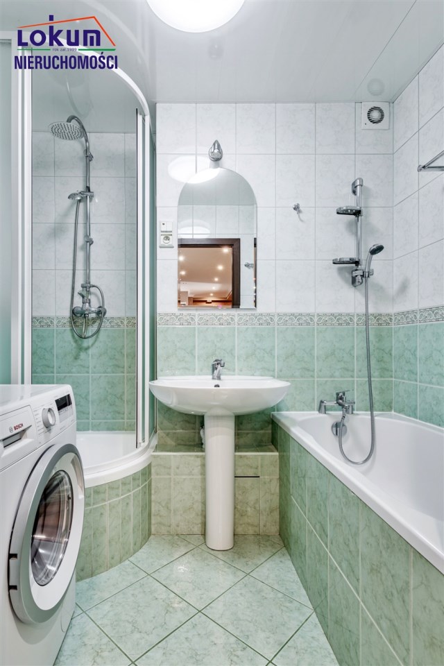 - łazienka i WC: osobne pomieszczenia. Łazienka jest w pełni wyposażona – zamontowano w niej zarówno wannę, jak i kabinę prysznicową,